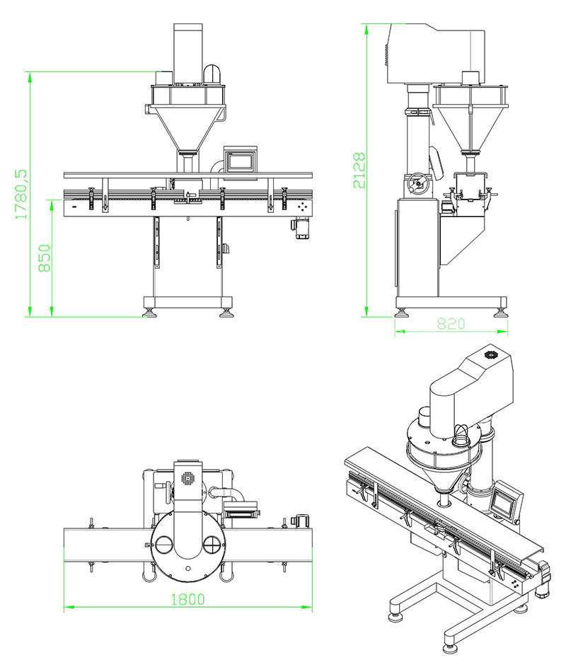 該系列罐裝機(jī)能完成喂罐、托罐、充填計(jì)量、稱(chēng)重選別等工作,可與其它設(shè)備配套組成整套罐裝流水線,適用于充填眼影粉、閃粉、胡椒粉、辣椒粉、奶粉、米粉、蛋白粉、豆奶粉、雞粉、咖啡粉、藥粉、添加劑、香精香料等。